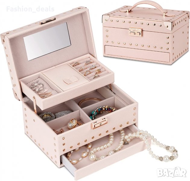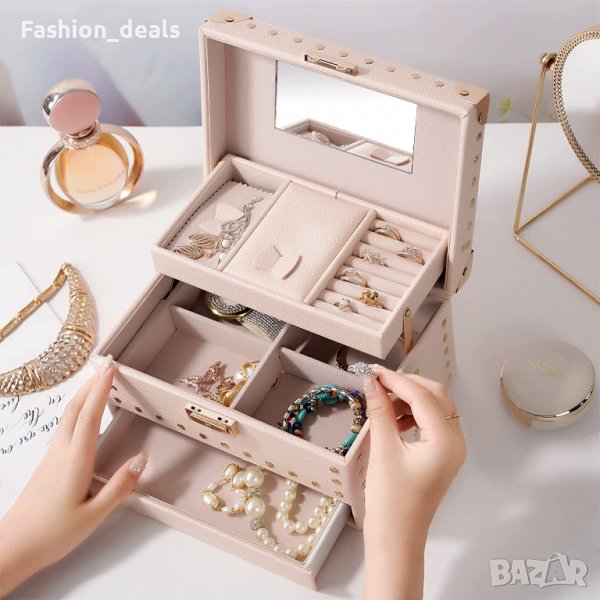 Нова голяма кутия за бижута Калъф за съхранение на пръстени обеци гривни органайзер за пътуване → Обява 38616742