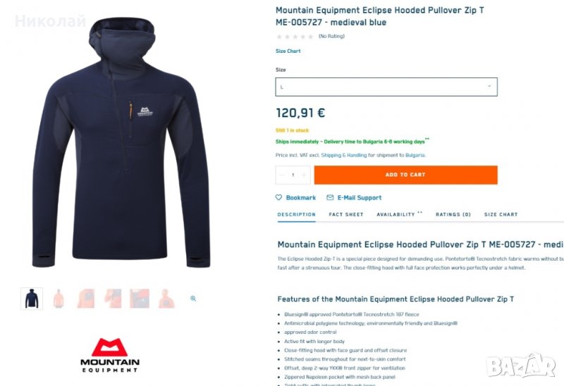 Eclipse Hooded Zip-T е специализирана част, предназначена за сериозна употреба. Поларът Pontetorto® Tecnostretch осигурява топлина без обем, като същевременно изсъхва изключително бързо след напрегнат подход. Плътно прилягащата качулка с пълна защита на лицето работи перфектно под каска. Bluesign® одобрен Pontetorto® Tecnostretch 187 руно. Polygiene антимикробна технология; екологичен и одобрен от Bluesign® контрол на миризмите. Активна кройка с по-голяма дължина на тялото. Плътно прилягаща качулка със защита на лицето и изместено затваряне. Зашити шевове навсякъде за комфорт до кожата. Двупосочен YKK® изместен дълбок централен преден цип за вентилация. Джоб Наполеон с цип и мрежест гръб. Ниски обемни маншети с интегрирани халки за палците. Тегло 290g 10.2oz