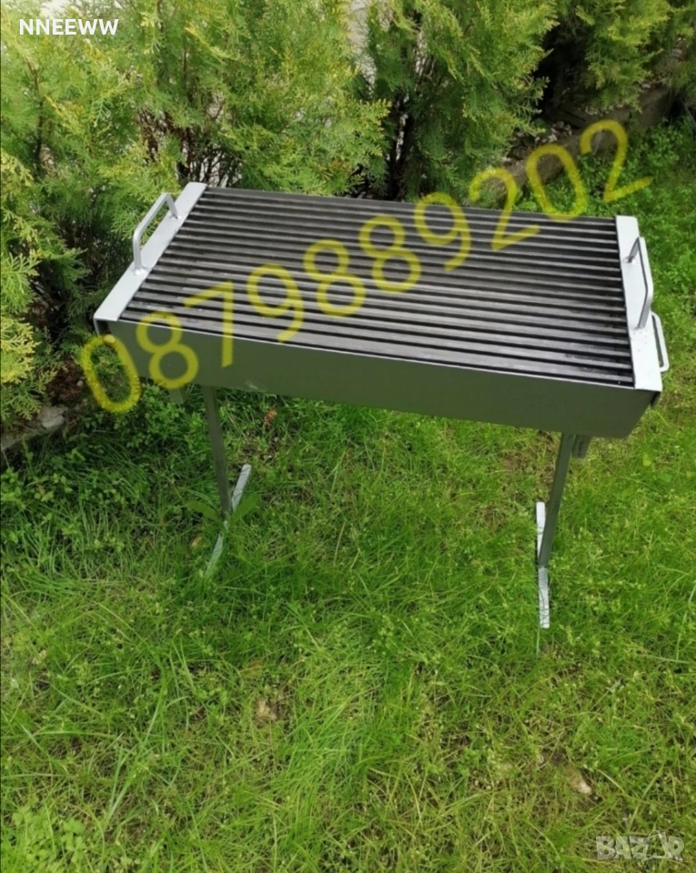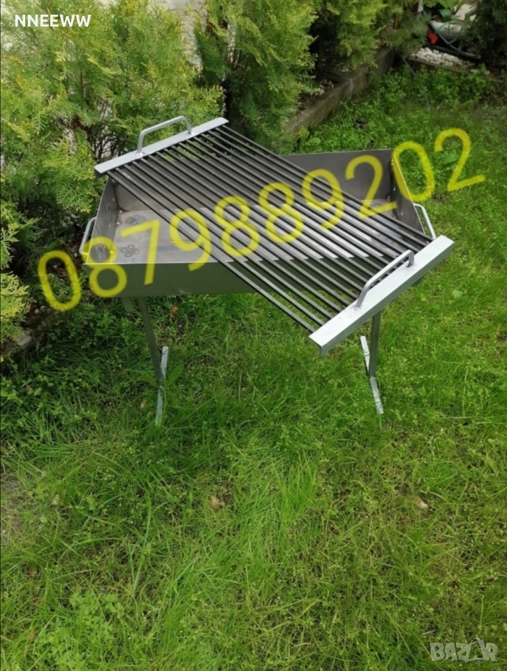 Качествено масивно стоманено барбекю, българско производство. Изключително здраво, тежко и стабилно. Дебелина на ламарината на тавата-2мм,оребрението на скарата е изработено от плътен квадратен профил с размери-6Х6мм!Компактна като може да се ползва и без краката, като се постави на подходяща маса. Краката се разглобяват и се събират в тавата за по-добра мобилност!