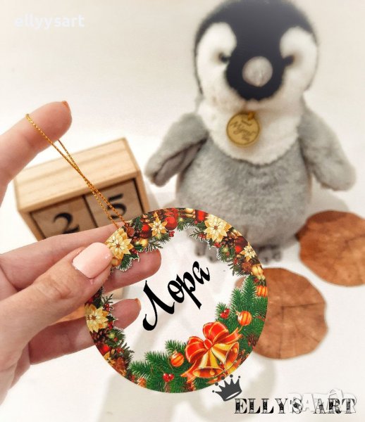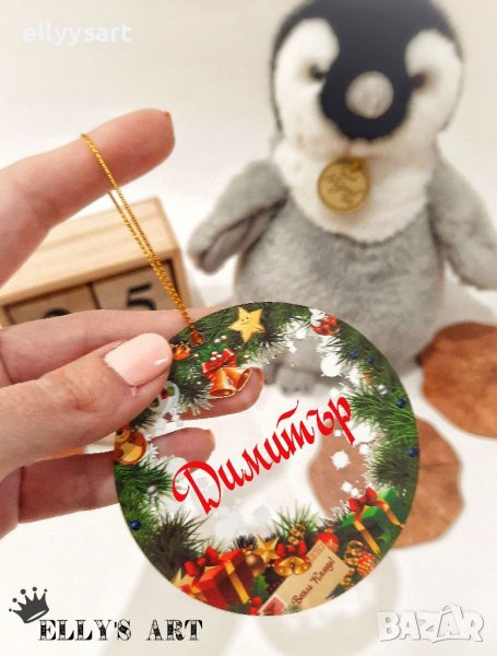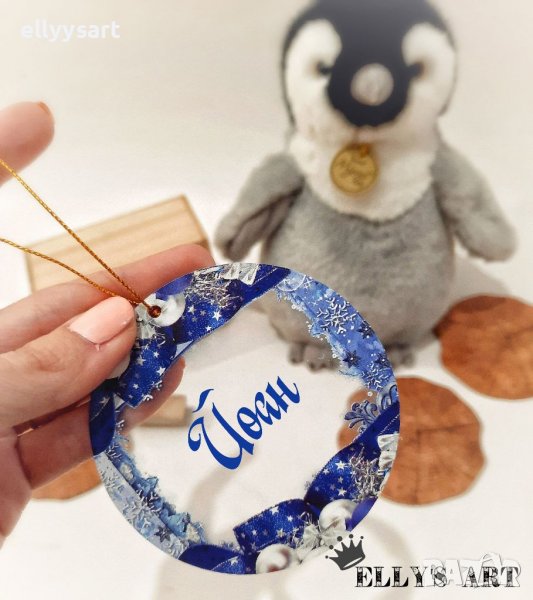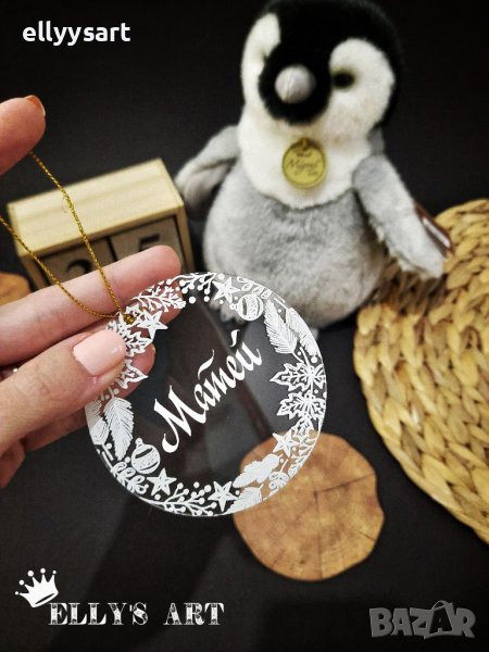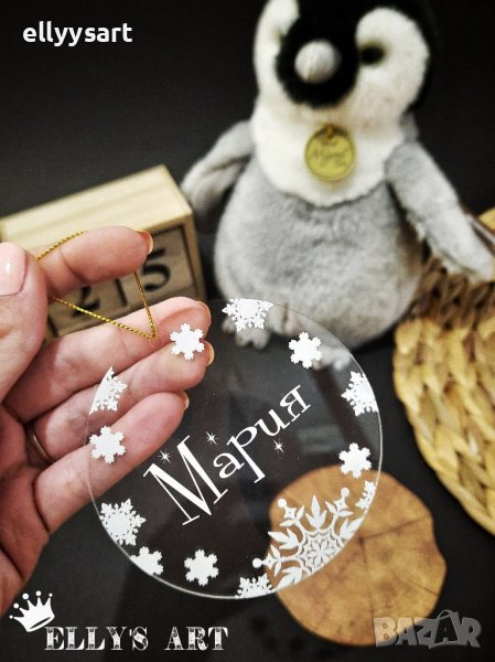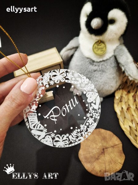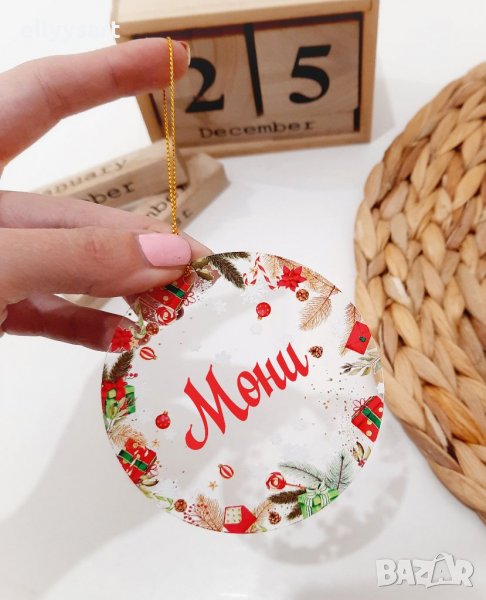 Коледна играчка с име за елха от плексиглас дизайнерска → Обява 38619416