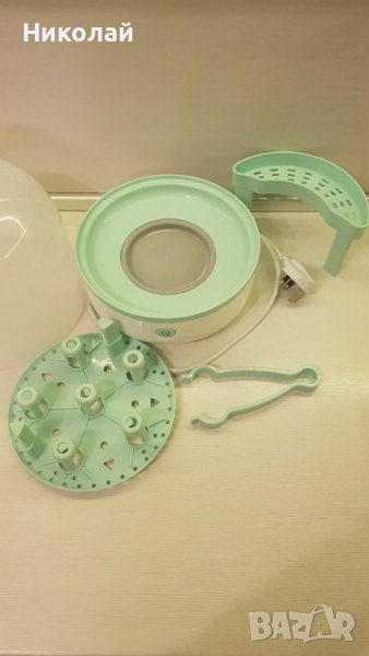 Стерилизатора е ползван внимателно,почистен е грижливо и е готов за употреба. Без залежки е и си работи нормално. За максимално 4бр шишета . Закупен е от Англия и е нужен преходник за щепсела. 40 лв