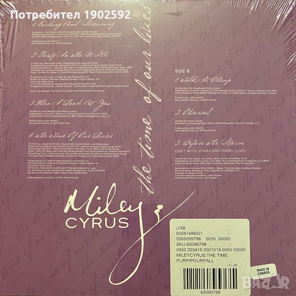 Miley Cyrus – The Time Of Our Lives Limited Edition, Purple Splattered White → Обява 38623088