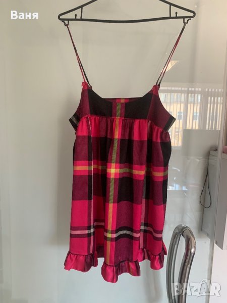 Секси сатенена нощничка с гол гръб на марката Victoria Secrets в красив кариран цикламен десен . В перфектно състояние е слагана 3,4 пъти максимум без никакви забележки. Размер xs /s
