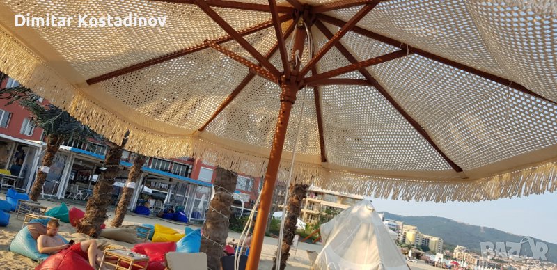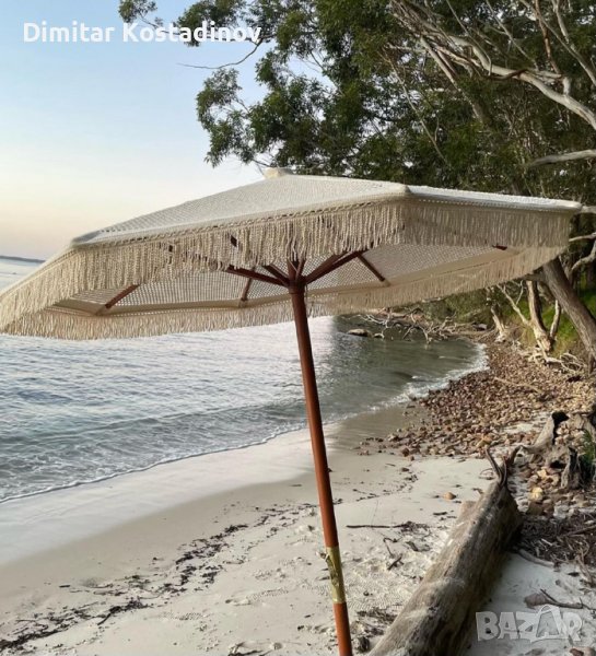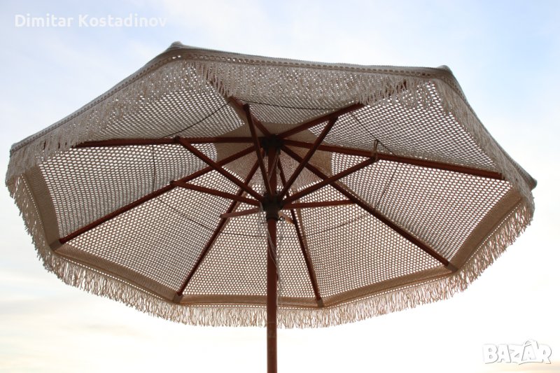 🌞🏖Открийте красотата и естетиката на уникалния модерен плетен чадър в Бохо стил от памучно въже. Стабилен пилон и конструкция изработени от дърво - Ясен. Размерът е 2.3 м, има 8 ребра. Този чадър е истинско бижу привличащо внимание към вашата тераса, ресторант или плажен клуб. Използвайте го, за да създадете вашата уникална атмосфера!