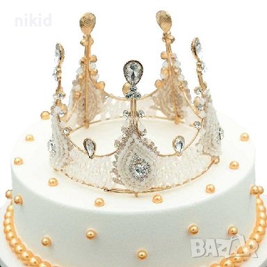 Златна Висока Корона Тиара пластмаса с мъниста за украса декор на торта → Обява 38628663