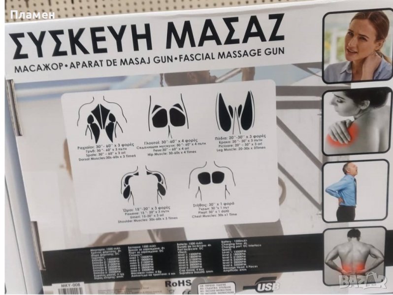и стави и U-образна глава за врата и гръбнака. Работи с батерия тип 1500 mAh