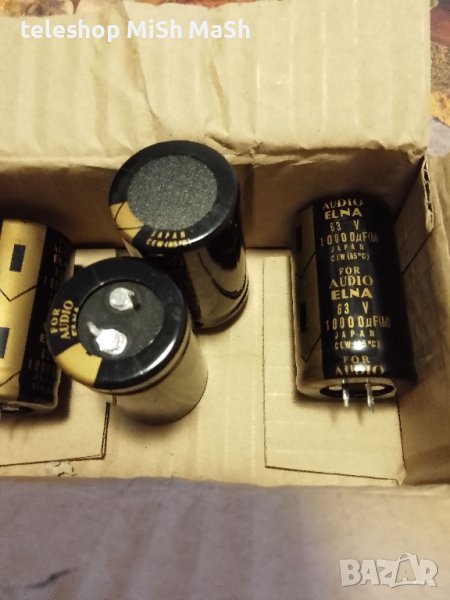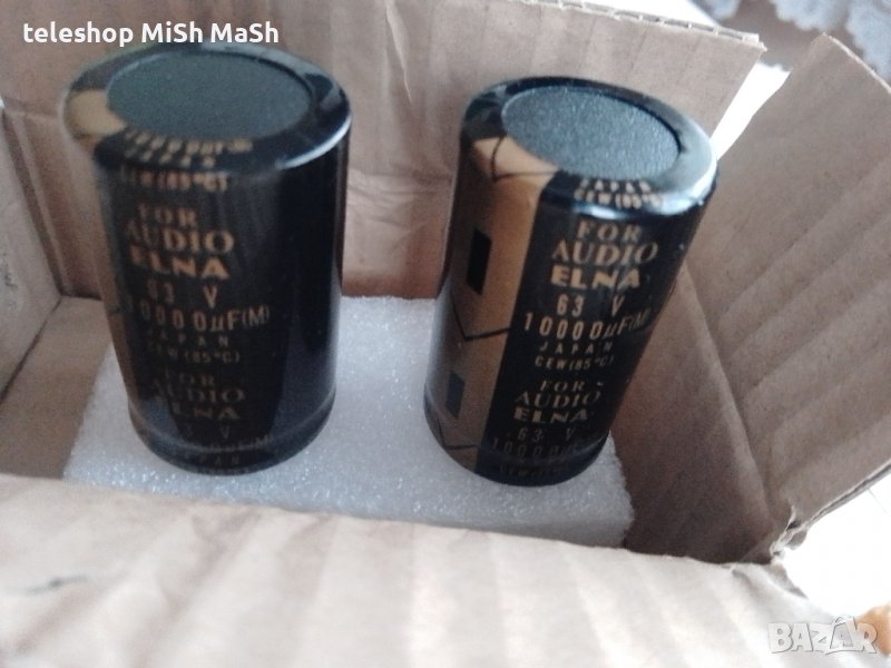 електролитни кондензатори с капацитет 10000 mf / 63V марка ЕЛНА ELNA ,използвани най-често в качествената японска аудио техника усилватели , Ресивъри , аудио уредби системи и други.