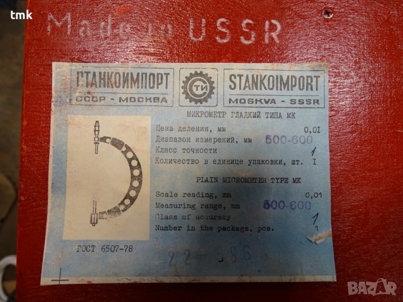 Предлагаме нов, оригинален, съветско производство, гладък микрометър със следните параметри: