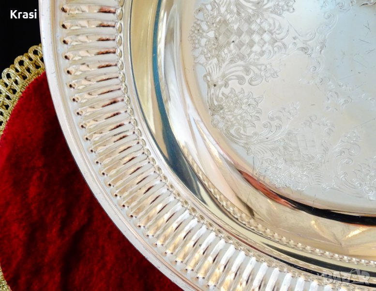 Старинна бронзова фруктиера,салатиера,съд за сервиране на световната марка WMF,дебело посребрена с висока проба сребро,декорирана с най-красивите релефно гравирани барокови орнаменти.Височина 6 см.,диаметър 26 см.,тегло 440 гр.