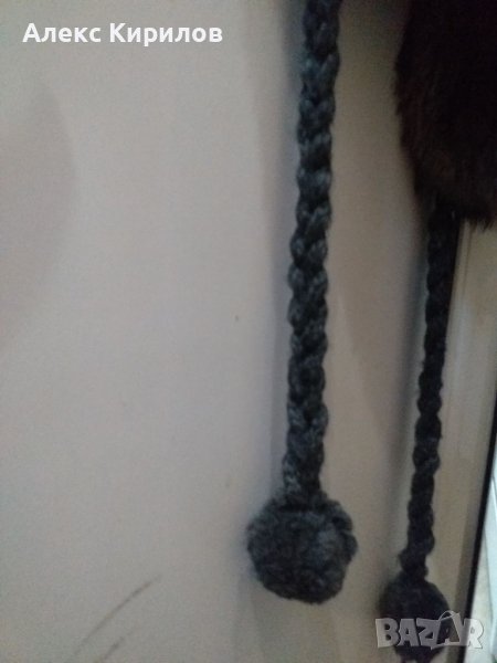 Шапката е плетена отвън, отвътре е с косъм,двата пискюли са плетени с топчета.,фи-25см.дълбочина-20см..,без забележка