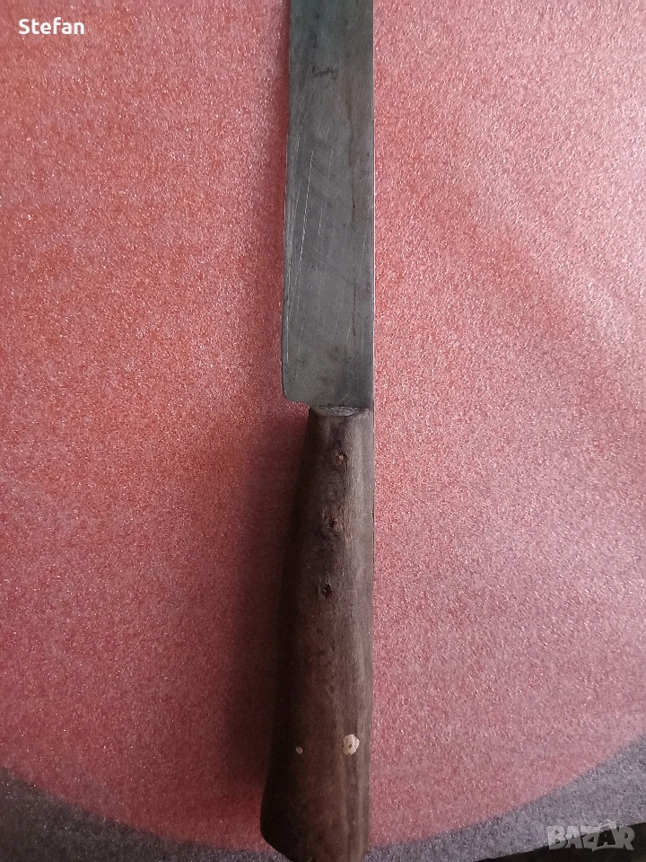 Стари Ножове и Сатър : Сатър - 26см. -острие -14/7 см.- 22€. Нож с кания от кожа от ресорна стомана с Дръжка от дърво - Дълъг - 37 см. - 23 €. Къдрав нож - 39 см.- 10€. Прав нож - 28 см. - 6€.