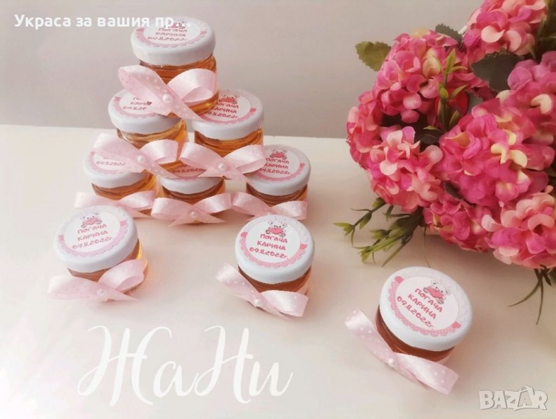 Бурканче с мед подаръчета за гостите на бебешка погача на тема Мечета → Обява 38643680