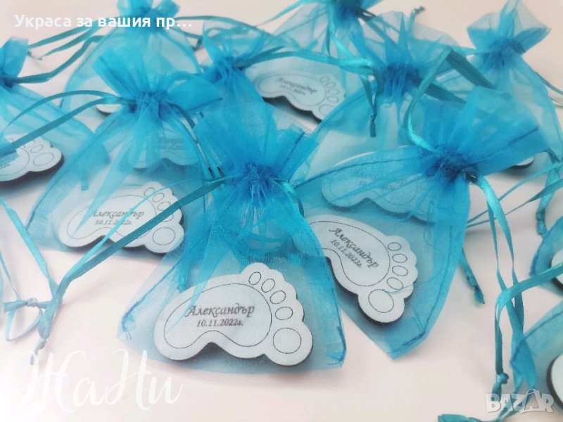Гравирани Магнити за хладилник крачета с име и дата подаръчета за гостите на прощъпулник, бебешка по → Обява 38643690
