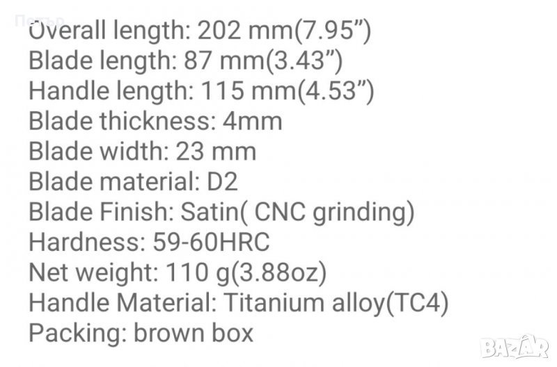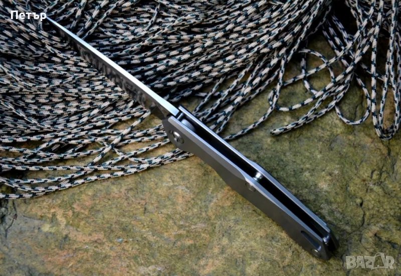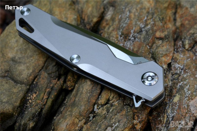 Флипер от марката Twosun, титаневи чирени с фрейм лок заключване на острието, лагерен механизъм за флипера, острие от D2 стомана. Характеристики на ножчето на последната снимка!