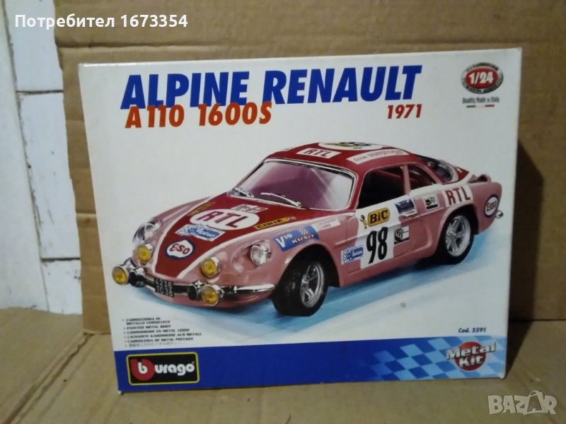 Продавам колекционерски модел на РЕНО АЛПИН А 110 1600S 1971 година метален с отваряйки врати и капак на мотора НА БУРАГО мащаб 1\24 (лепенките са тук но не поставени когато съм го правил преди около 20 години ми е харесвал така и за това не съм ги сложил но са в комплекта и ако някой иска може да ги постави и ще изглежда както на кутията или менюто за направа)същия модел се произвежда и в БЪЛГАРИЯ като БУЛГАР АЛПИН като нов