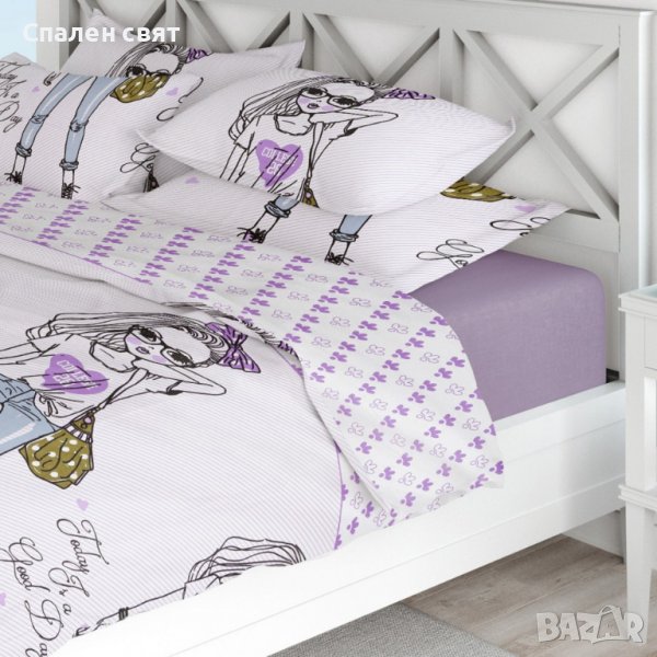 Комплектът може да се изработи и с едноцветен долен чаршаф.