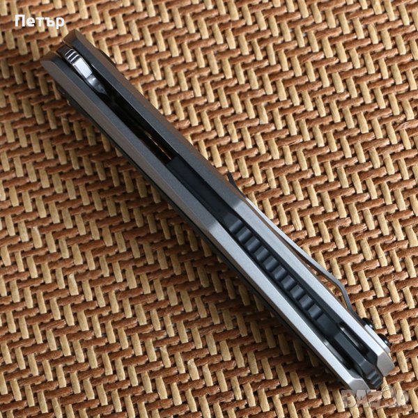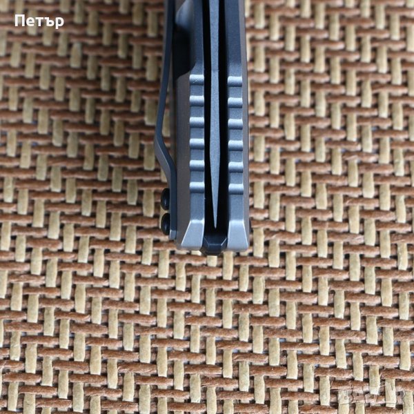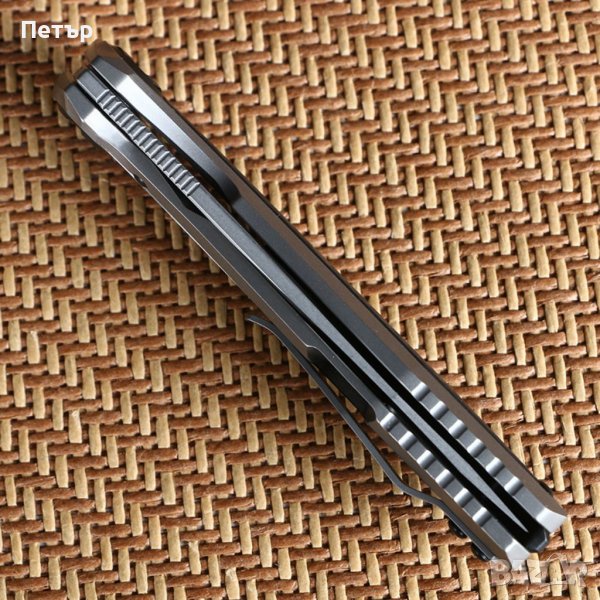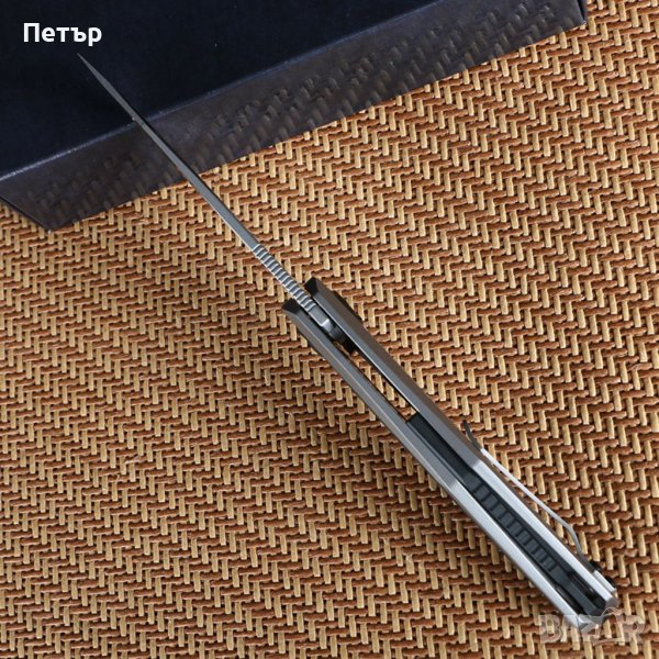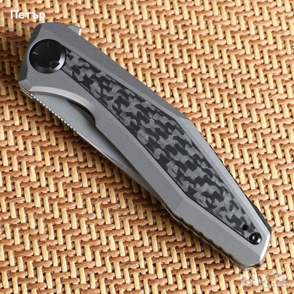 Малко ножче от Green Thorn, под 100 грама, разбира се титан + карбон дръжка с линер лок заключване на острието от D2 стомана. Повече мерки на последната снимка!