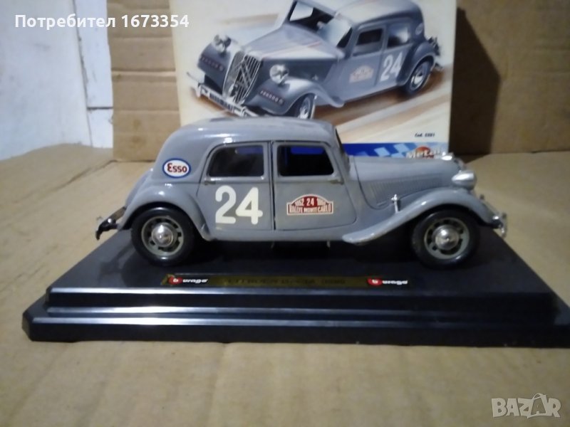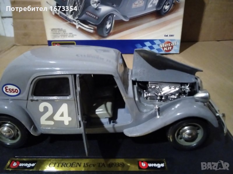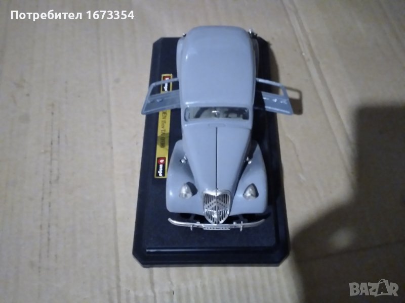 Продавам колекционерски модел на CITROEN 15CV -TA1938 година (тракшан авант) метален с отваряеми врати и капаци на БУРАГО (лентите за купето който се залепват на капаците и тавана не са сложени но са налични на 13та та снимка с леки дефекти