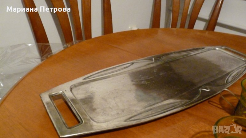 Чашите са за чай, мляко или кафе. Чашите в подстаканите са от дуралекс. Подносът е сребърен и може да се използва за друго сервиране. Комплектът е стар, но няма забележки по него. Трябва допълнително да се излъска със сода, за да светне като нов. Цена на сервиза - 22 евро., а на подноса - 5 евро.