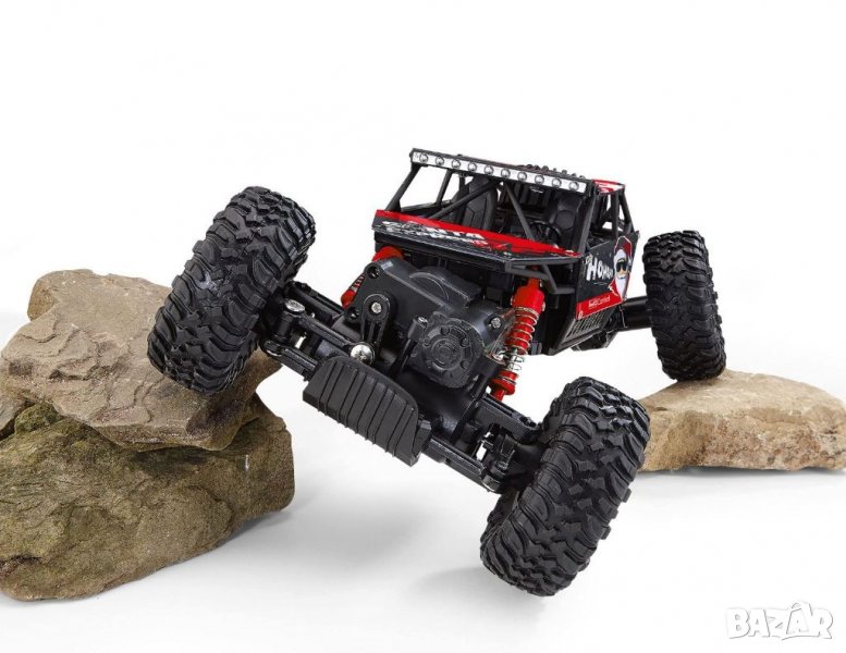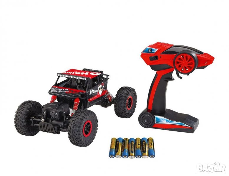 Перфектен офроуд автомобил, благодарение на постоянното задвижване на четирите колела и блокирането на големи оси – изисква се умение при пълзене по стълб и камък, здраво шаси, гуми за офроуд сцепление... Налично е и удобно дистанционно управление с пистолет с 2,4 GHz технология. Гарантирано дълго забавление при шофиране без време за зареждане - с батерии ( 6 x 1,5 V AA батерии) 🔋