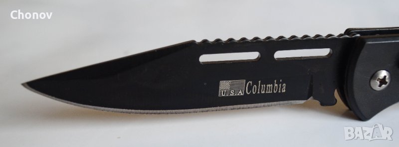 Чисто нов автоматичен сгъваем нож Колумбия в опаковка с бутон за отваряне и със заключване. Стоманено острие с метална дръжка с клипс за носене!