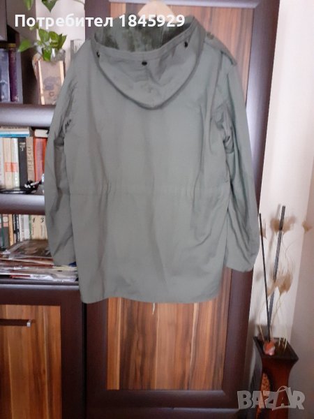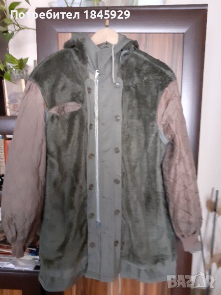 2.Зелен/каки/ цвят с качулка и каракул.Подплатата се сваля. Размерите са: Ръкав-65 см.;Рамо- 52 см.Гръдна обиколка- 130 см.;Дължина-80 см.Закопчаването е с цип и копчета. Джобовете са 4 външни и 1 вътрешен. Цена 35 лв.За повече информация може да се обадите.