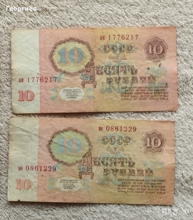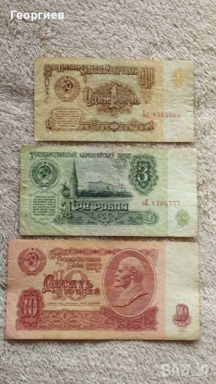 Банкноти 1,3,,10 рубли(1991 г.и 1961 г) -2 € за една банкнота.