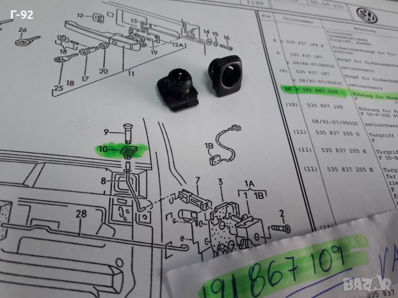 191867109**NEU**VAG**VW**GOLF**CORRADO**РОЗЕТКА - ЗА БУТОН НА ВРАТИТЕ **