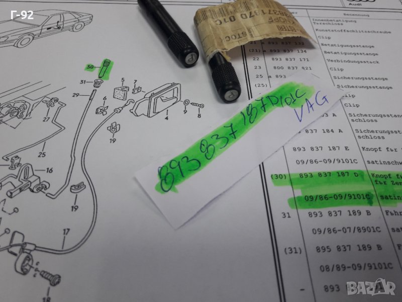 893837187D/01C**NEU**VAG**AUDI**БУТОН ЗА ЗАКЛЮЧВАНЕ НА ВРАТИТЕ**