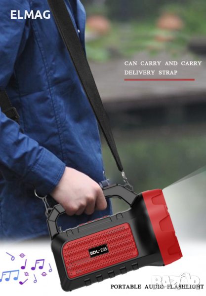 Можете да го вземете в гаража, сред природата, за лов и риболов, на вилата и където пожелаете. Прожектора е с компактни размери лесен за пренасяне, благодарение на пластмасовата вградена дръжка или чрез текстилната дръжка (каишка) за през рамо. Прожекторът работи с външни носители като USB, TF карта, AUX и възпроизвежда MP3 файлов формат.