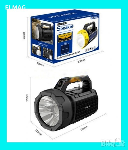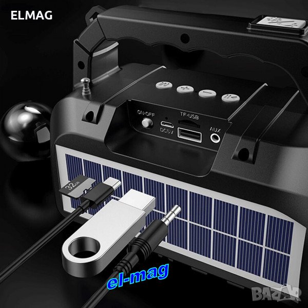* Супер функционален прожектор с вградена акумулаторна батерия, Bluetooth, радио, лампа и соларен панел.