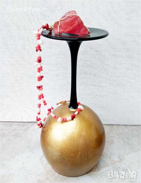 едната огърлица необработеният камък (приблизително 3 х 3 х 5 см) е в