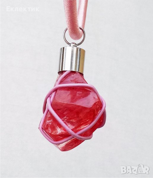 Другото колие е по-семпло – камъкът е в кошничка от 3мм кожен шнур и е захванат с метален държач. Висулката