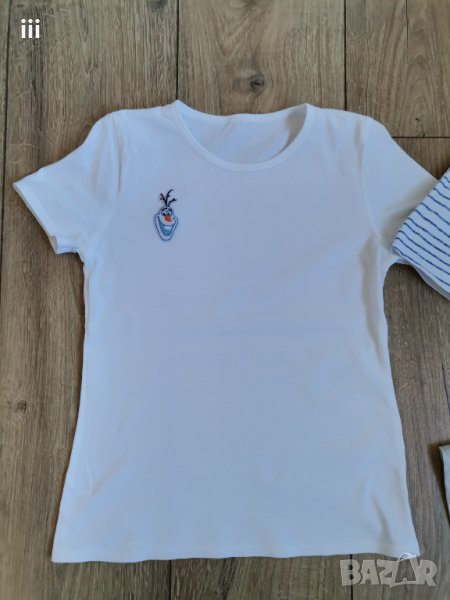 Бяла тениска: купена от Декатлон за часовете по физическо. Олаф е сложен допълнително. Подмишници 36 см, дължина 49 см.