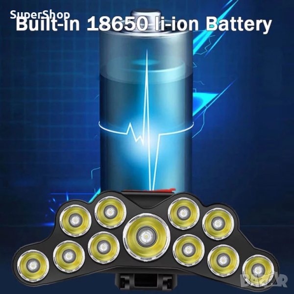 Мощен Работен Челник 11 LED диода фенер за глава с USB лампа → Обява 38671494