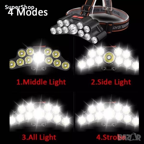 Супер мощен Фенер тип „Челник“ с 11 мощни LED диода, работещи на няколко режима идеален за къмпингуване, велосипедни спортове, туризъм, алпинизъм, спортно ходене, риболов, пътуване. Изключително полезен при ремонти в бита, за шофьори, при ветроходни спортове и т.н. С УДОБНО USB зареждане отвсякъде.
