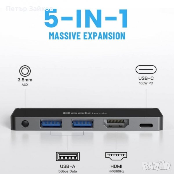 iPad Hub: Превърнете единичния USB-C порт на вашия iPad Pro в 5 порта - един 4K 60Hz HDMI, два USB 3.0 5Gbps, един 3,5 мм жак за слушалки и един 100W PD Type-C порт за зареждане. Имате всичко необходимо