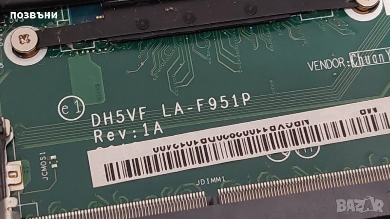 Останалите части се виждат. Проблем с дъното (клавиатурата светва, но няма картина), слота на рам паметта е за смяна. Дъно номер: DH5VF LA-F951P Rev: 1A с процесор Intel Core i7-8750H, Nvidia GTX 1050 4GB видео карта. Батерията държи, но не знам точно колко.