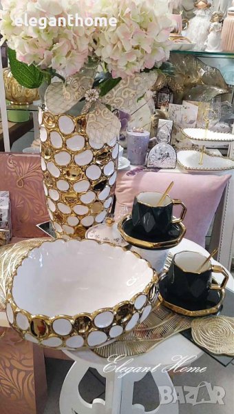 КЕРАМИЧНА ВАЗА В БЯЛО И ЗЛАТНО