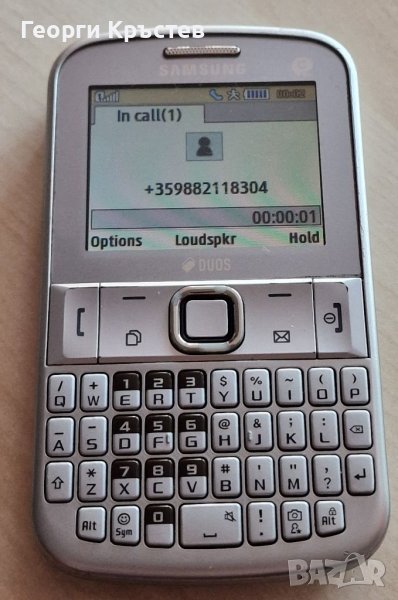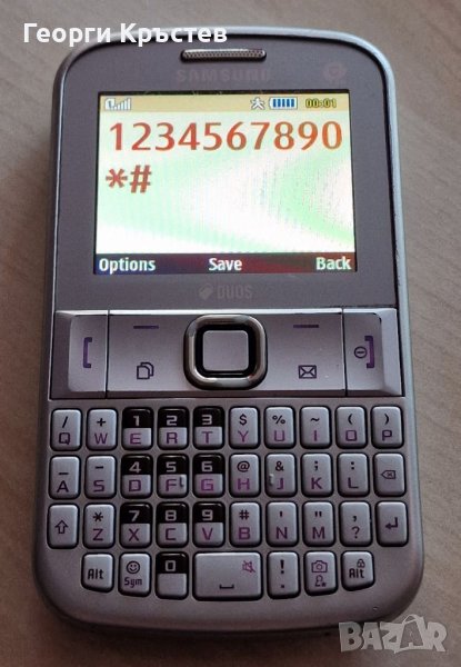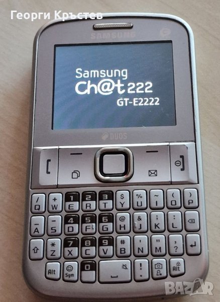 E2222 - добър външен вид, слушалката и микрофона са ОК, 2 СИМ карти, има БГ меню, без заден капак, батерия и зарядно, единствено има проблем с пластинките за СИМ.
