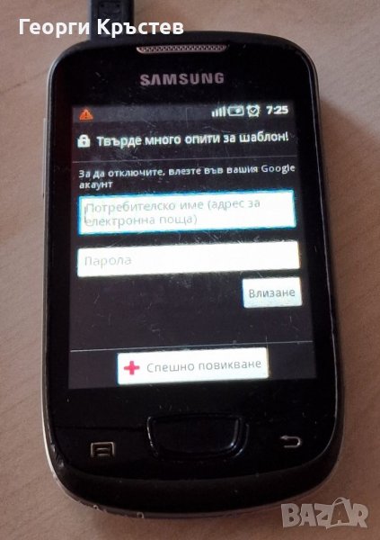 S5570 mini - добър външен вид, слушалката и микрофона са ОК, има БГ меню, всичко работи, но не мога да вляза, трябва акаунт за Google, без батерия, заден капак и зарядно.