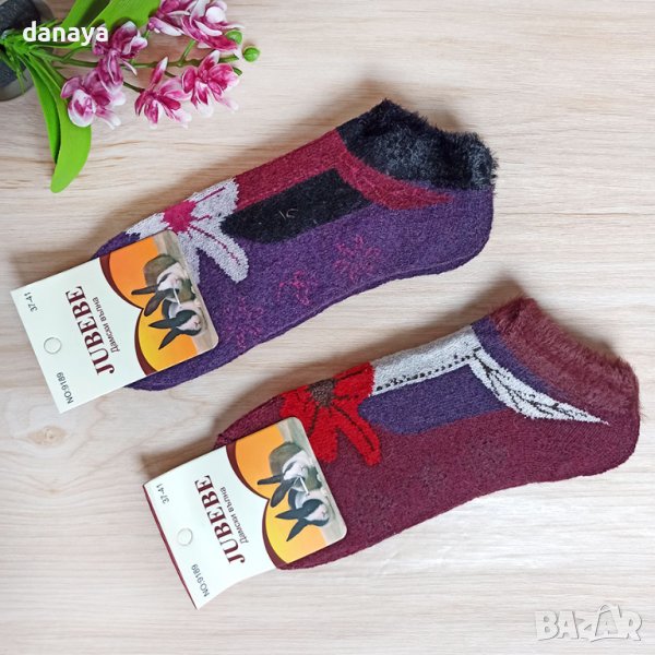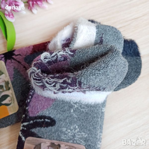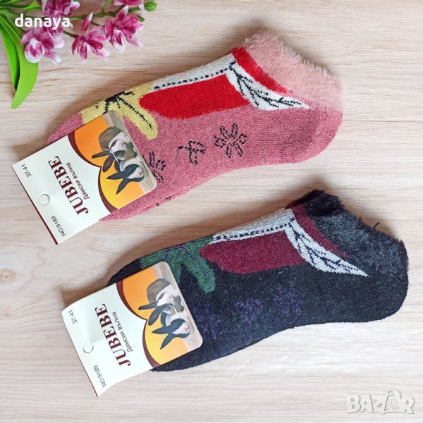 Зимни термо чорапи, много топлят! Идеални са за зимният сезон. Чорапите са подходящи за маратонка, с шарка цвете по тях. В краищата си чорапите имат меко пухче, допринасящо топлина в студените зимни дни. Дамски чорапи с универсален размер, еластични, мекички и топли.
