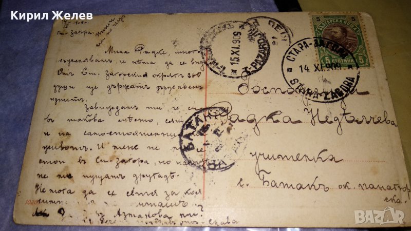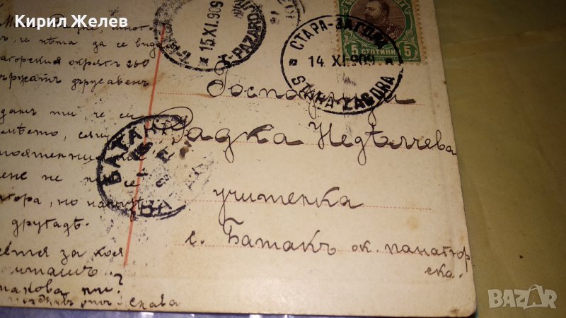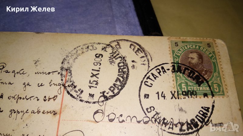 1909г. СТАРА ПОЩЕНСКА КАРТИЧКА ТВЪРД КАРТОН РЯДКА ЦВЕТНА ЛИТОГРАФИЯ ЦАРСТВО БЪЛГАРИЯ с МАРКА 32460