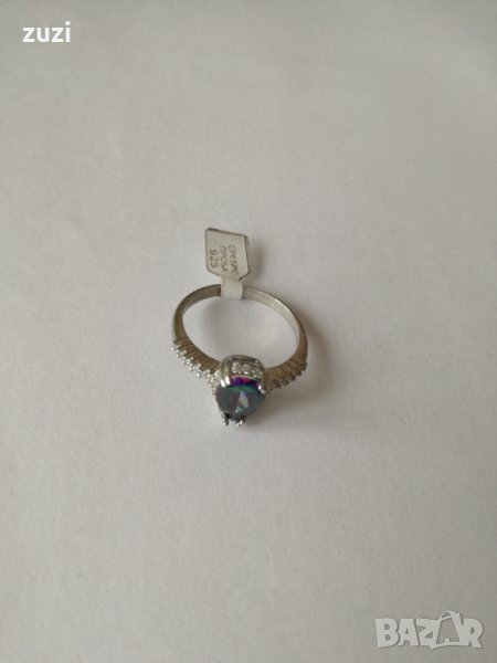 Сребърен пръстен със зелен топаз и циркони. Сребро проба 925. → Обява 38684869
