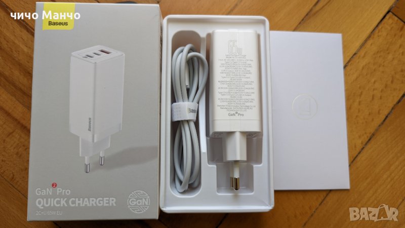 Ново! Baseus GaN 2 pro 65W Бързо зарядно + 100W PD кабел