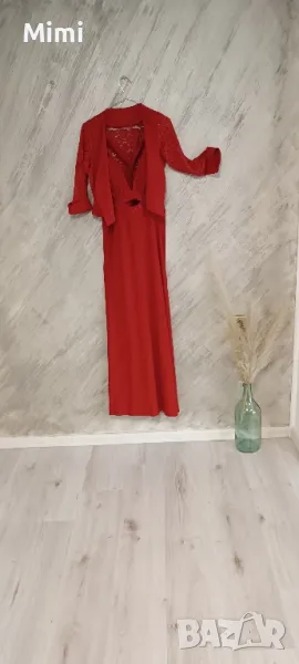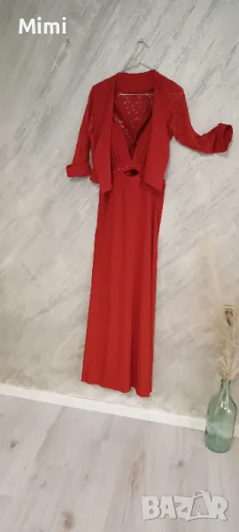 Роклята е универсален размер, моят размер е XL и ми става, дори може да стане на по едри дами, както и на слаби, ако се прихване на кръста. Материята гали кожата. Към нея подарявам сако в същият цвят. Роклята е с дължина малко над глезена за жени 171см.