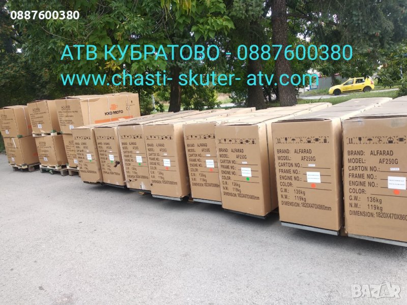 кросови мотори ALFARAD 250cc с нов и подобрен дизайн. Пристигнаха също така и останалите нови модели АТВта в последните 2 контайнера, които се разтовариха вече вчера в Кубратово. РЕАЛЕН АСОРТИМЕНТ с покритие на всички възрастови категории: за деца, за юноши, за възрастни и за двама души и на АТВта и на КРОСОВИ мотори: