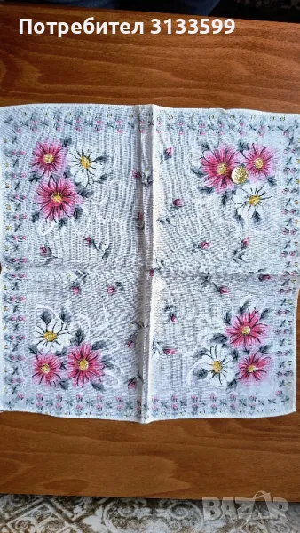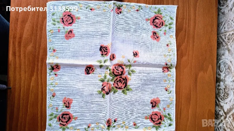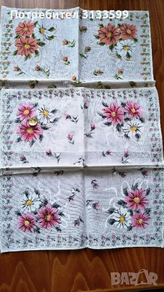 - Снимки 5, 6 и 7: Две фини дамски носни кърпички с еднакъв мотив в различни разцветки. Цена: 1 лв./брой