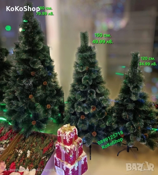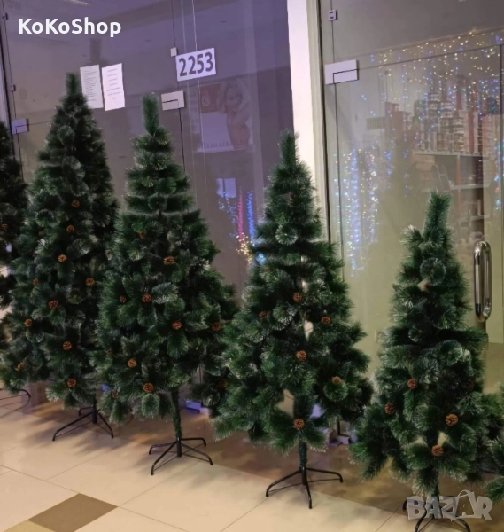 Красиви и изключително реалистични изкуствени коледни елхи. Предлагат се в два варианта-в класически зелен цвят и зелени с бели връхчета. Елхите са със стабилна стойка,а размерите от 120 см. до 300 см. са декорирани с шишарки.