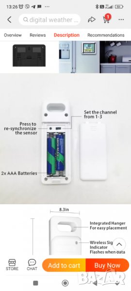 Скорост на опресняване: 10 секунди RF радио честота: 433 MHz Захранване: AAA батерия (не е включена) Размер на елемента: Хост: 114 *96*24 мм / 4,5*3,8* 0,9 инча Предавател: 100 * 35 * 20 мм / 3,9 * 1,4 * 0,8 инча Тегло на артикула: Хост: 142 г/ 5,0 унции Предавател : 40g/1,4 унции Размер на опаковката: 155 * 135 * 33 мм / 6,1 5,3*1,3 инча Тегло на опаковката: Тип1: 232g/8,2 унции Тип2: 320g/ 11,3 унции Опаковъчен списък: Тип1:1 * Хост1 * Предавател2* Перлени памучни торбички1 * Инструкция на английски1 * Експлозия- доказателствен комплект винтове
